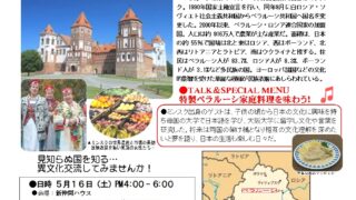 その後、いかがお過ごしでしょうか。。。 新型コロナウイルス感染症の拡大にともない緊急事態宣言が延期された状況を踏まえ 皆様の健康と安全を第一に考慮し対応いたします。 今を皆さんとともに乗り越えたいと思います。◎今後の状況により変化することもございますので、 各イベントは必ず、ご予約をお願い致します。 ◎多文化交流サロンpart188「バングラデシュ」 5月15日(金) を★⇒7月3日(金)