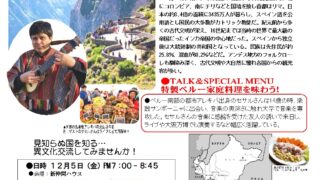 多文化交流サロン2025年10月28日☆12月5日(金)多文化交流サロンpart237 「ペルー」…トーク&お料理、そしてアンデス音楽:午後7時~